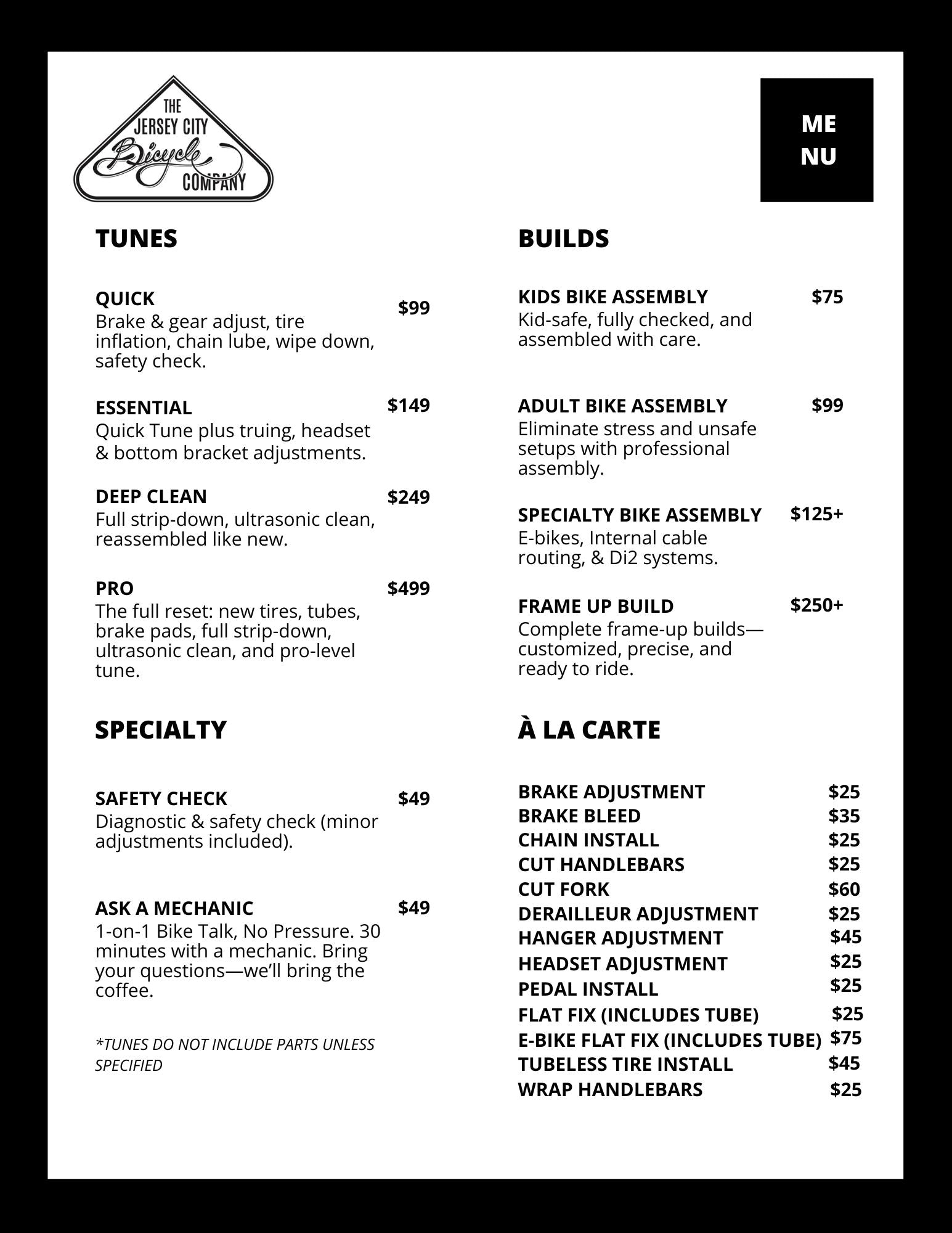 Now through September 30th, if your bike needs more work, we’ll take $25 OFF an Essential Tune, Deep Clean, or Pro Tune